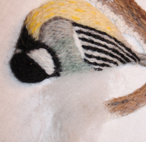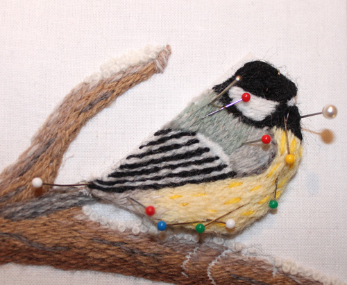 My little bird really stands out from the fabric. More and better photos are coming when I am finished with the project.
