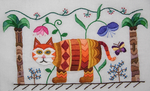 Crewel embroidery has a very long history. The Bayeaux tapestry stitch about 1000 years ago is considered a crewel embroidery. The embroiderers used only 8 colors to create this magnificent embroidery. It’s definitely worth a look at. I took a quite peek at a book about in the library the other day, and they really made interesting use of the stitches to create textures and lines. Crewel embroidery has gone in and out of fashion. In the 17th century is was popular and is often called Jacobean embroidery. Many of you may think of the 70s when you think of crewel with its browns and oranges and avocado greens when this type of stitching enjoyed a bit of popularity. Today’s crewelers have a multitude of patterns to choose from traditional to contemporary. There really isn’t any rule for what type of design can be used in crewel embroidery. And really, you can make any type of pattern into a crewel project by the threads and stitch choice.