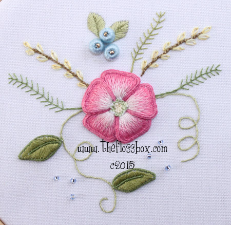 This project was developed with the idea of making a series of stumpwork designs that would give beginners practice with certain techniques.