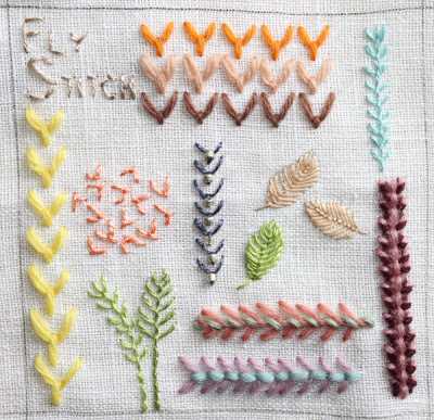 Another week flew by, so it’s time for another stitch school entry. This week is the fly stitch. It’s not so uncommon as some of the others, so no doubt many of you are already familiar with it, but it’s one of my favorites, so here it is! This is another stitch formed in two strokes, which makes it easy to think of lots of variations.
