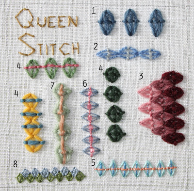 There are of course, a whole wide range of variations for the queen stitch. Here is shown just a few of them.