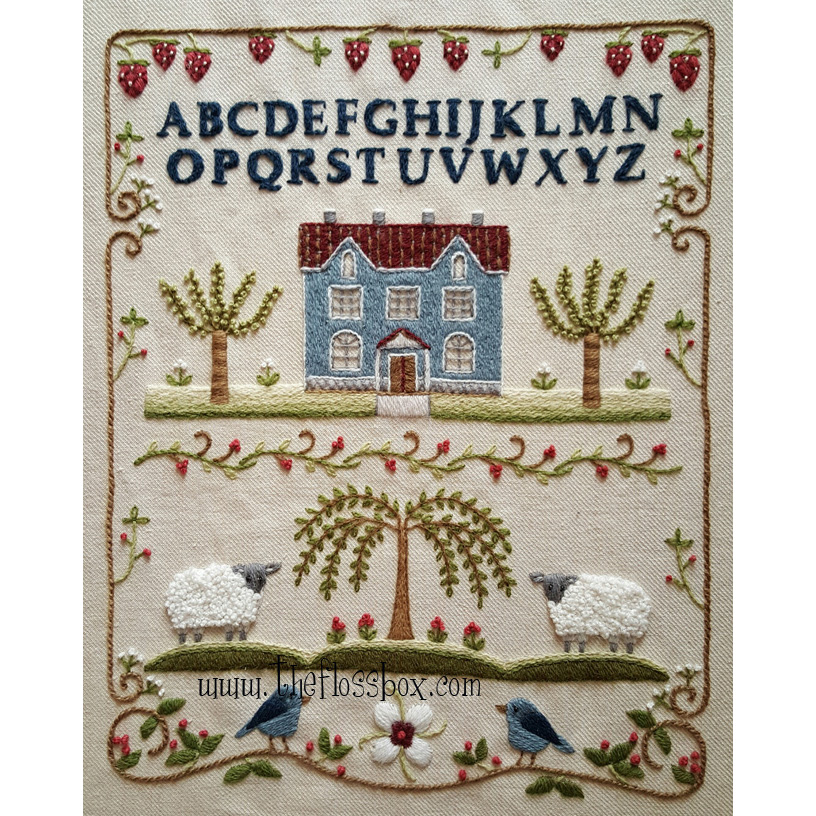 Kit comes with printed tan linen, Appleton crewel wool, printed instructions with a stitch guide, a needle.