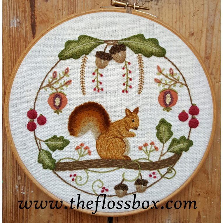Kit comes with printed cream linen, Appleton crewel wool, printed instructions with a stitch guide, a needle.